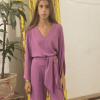 Pantalón teen tejido fluido color lila con cinturilla elástica, corte recto y aberturas laterales.